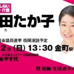 2025年11月4日 / 最終更新日 : 2025年11月4日 katsushika トピックス 11月5日 沼田たか子 街頭演説会 葛飾・生活者ネットワーク 区議会議員候補 沼田たか子 街頭演説会 11月5日(水) 11:00 金町駅 15:30 高砂駅 17:30 亀有駅 応援弁士 東京・生活者ネットワーク 元都議会議員 小松久子 原発ゼロの ゼロ […]