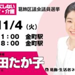 2025年11月3日 / 最終更新日 : 2025年11月3日 katsushika トピックス 11月4日 沼田たか子 街頭演説会 葛飾・生活者ネットワーク 区議会議員候補 沼田たか子 街頭演説会 11月4日(火) 11:00 金町駅 18:00 金町駅 ※やむを得ない事情で予定が変更になることがあります。