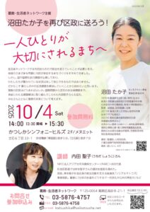 「一人ひとりが大切にされるまちへ 沼田たか子を再び区政に送ろう!」を終えて