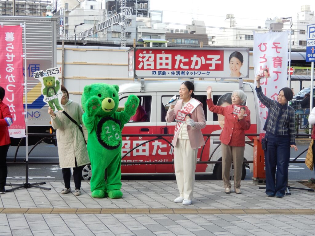 11月2日から始まった葛飾区議会議員選挙も本日最終日を迎えました。沼田たか子は区内各地を選挙カーで駆け回り、区民のみなさまにさまざまな政策を訴えさせていただきました。同時に、みなさまからたくさんの励ましやご声援もいただきました。選挙期間中に沼田たか子を通じて、葛飾・生活者ネットワークにお寄せいただいた貴重なご意見やご提案をしっかりと受け止め、今後の活動に活かします。本日選挙が終わりましたが、葛飾・生活者ネットワークは沼田たか子とともに、だれもが安心して暮らせる葛飾をめざし、区政を変えてまいります。